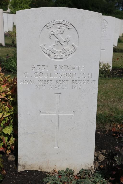 Private Charles GOULDSBOROUGH, G/6331, 6th Battalion, Queens Own Royal West Kent Regiment, died of wounds, Flanders France, 9th March 1916.