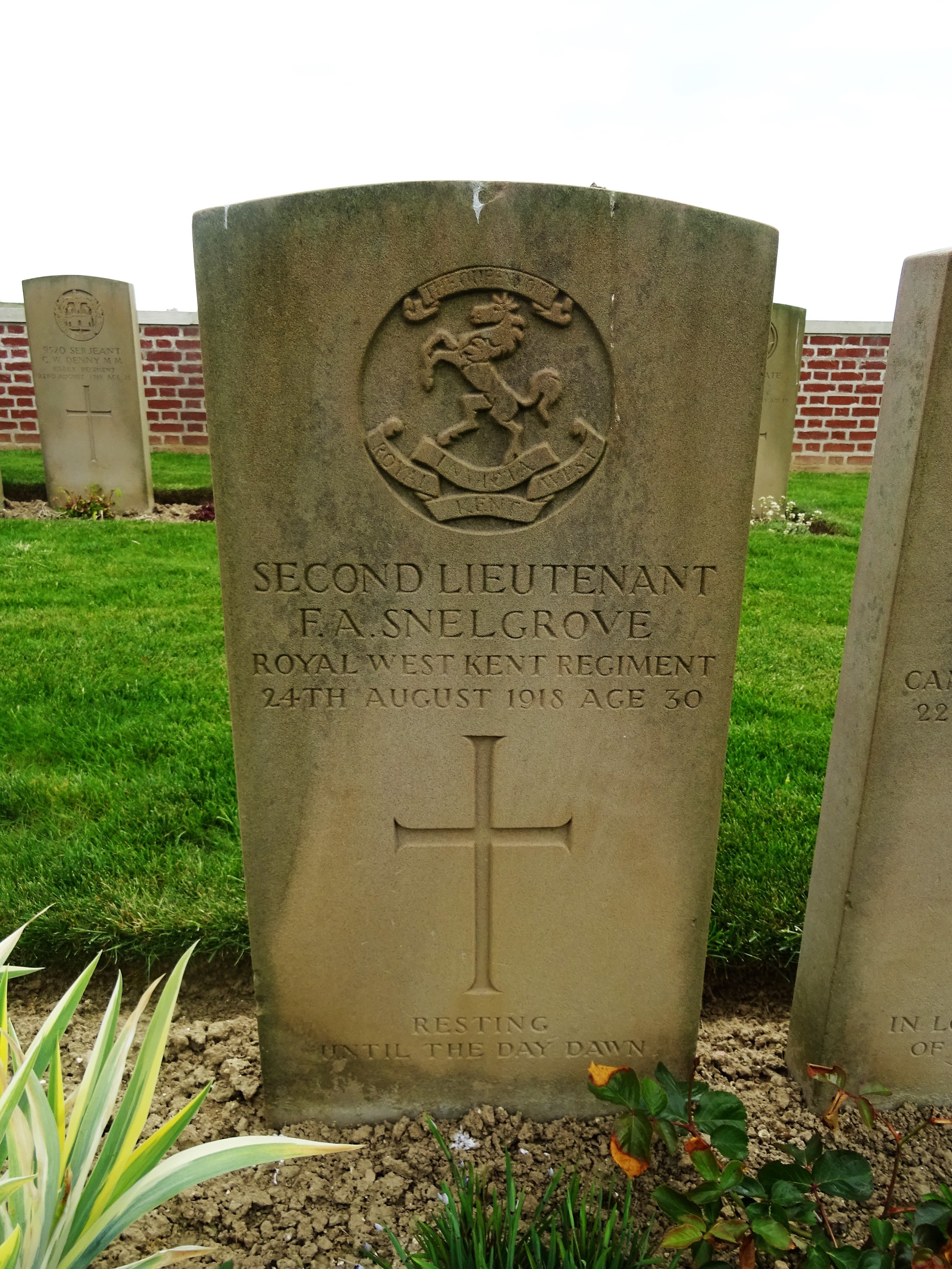 Second Lieutenant Frederick Augustus SNELGROVE, 6th Battalion, Queens Own Royal West Kent Regiment, killed in action, 24th August 1918, age 33.