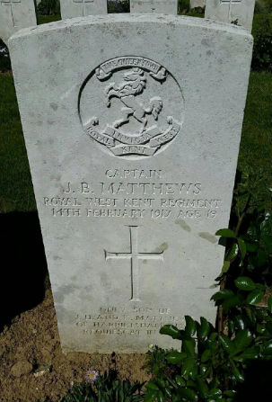 Captain John Brice MATTHEWS, 7th Battalion, Queens Own Royal West Kent Regiment, killed in action, 14th February 1917.