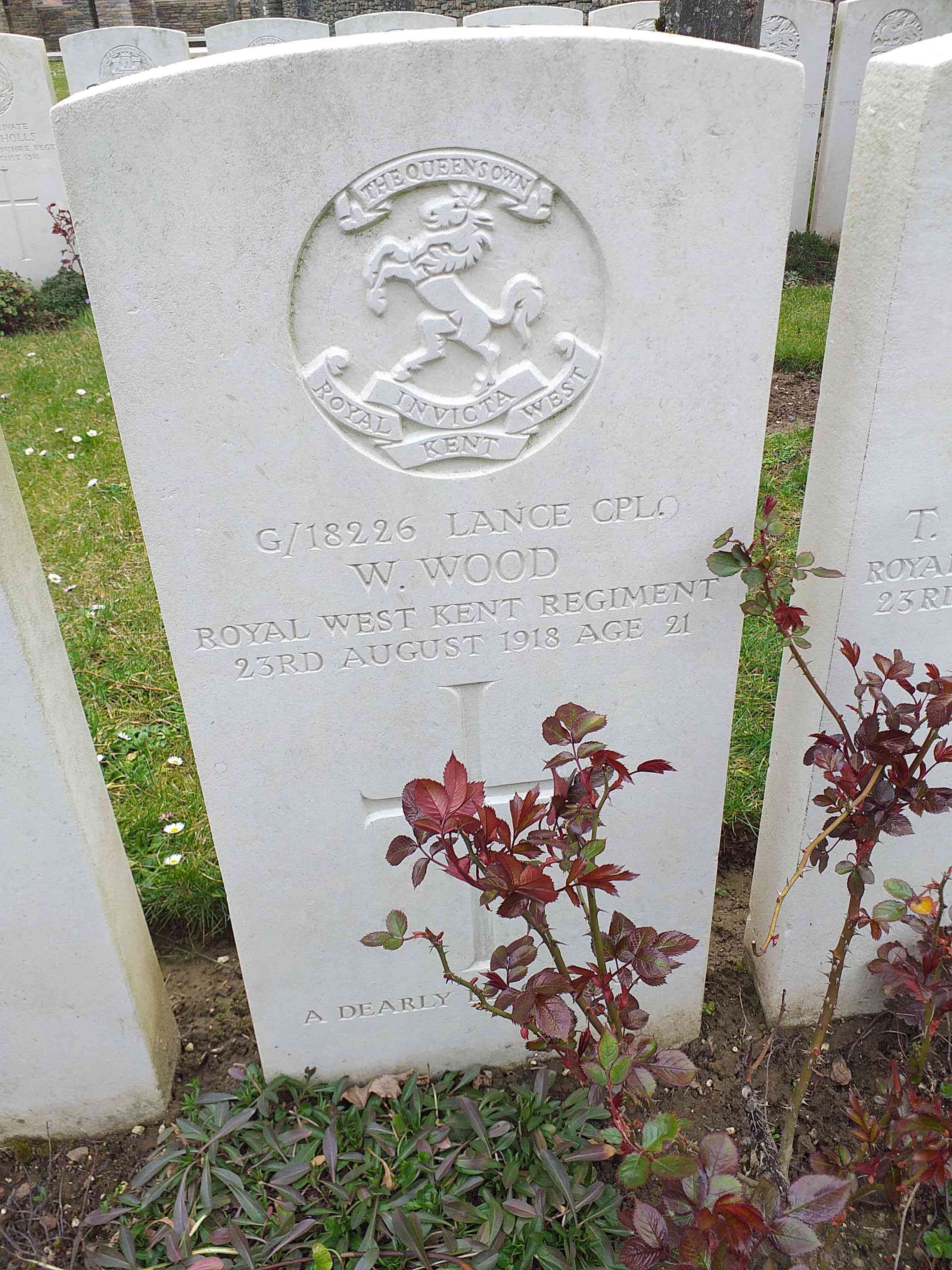 Lance Corporal Wilfre(i)d WOOD, G/18226, 7th Battalion, Queens Own Royal West Kent Regiment, killed in action, Flanders France, 23rd August 1918, age 21.