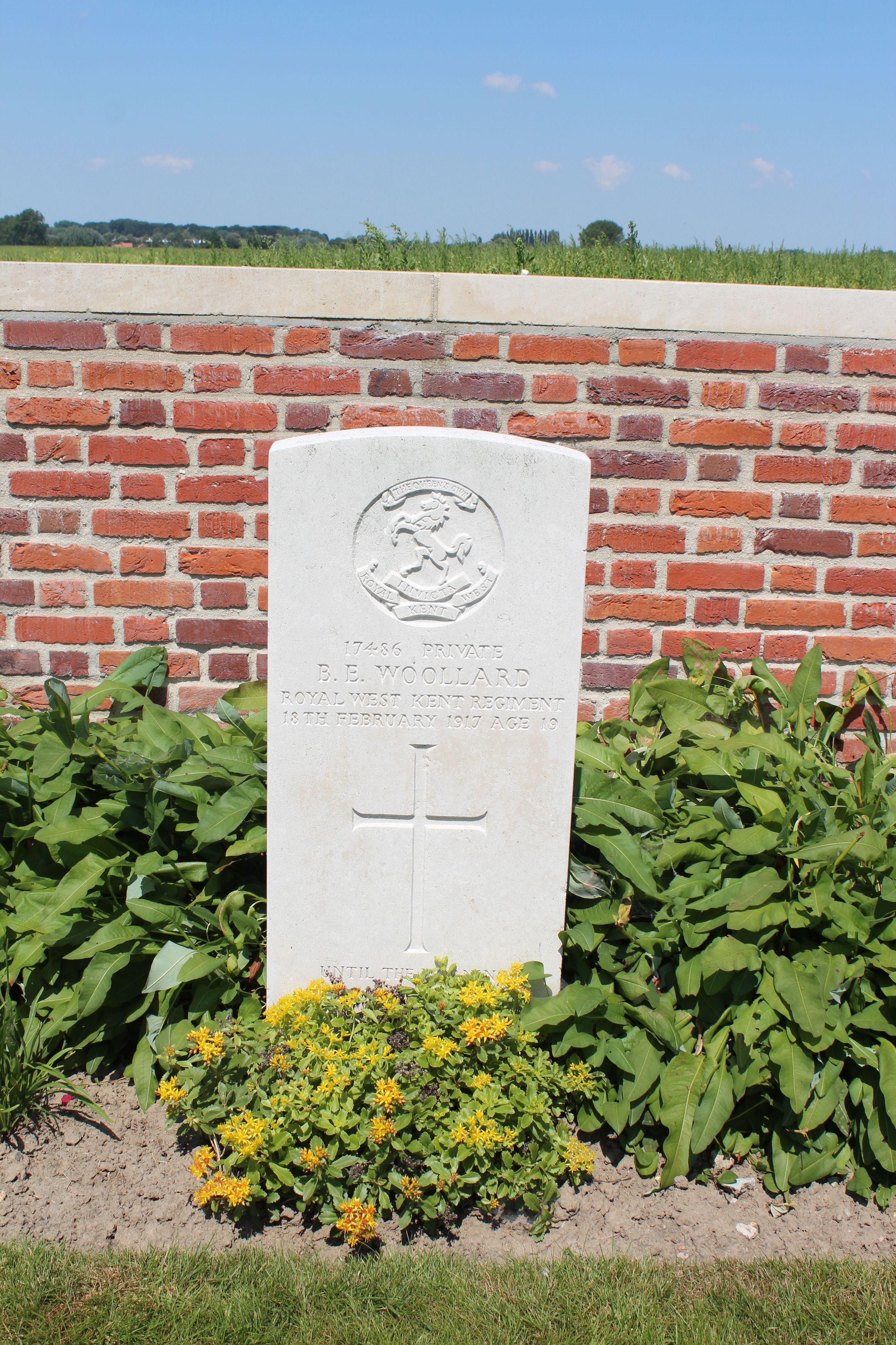 Private Basil Edgar WOOLLARD, G/17486, 11th Battalion, Queens Own Royal West Kent Regiment, killed in action, Flanders France, 18th February 1917, age 19.