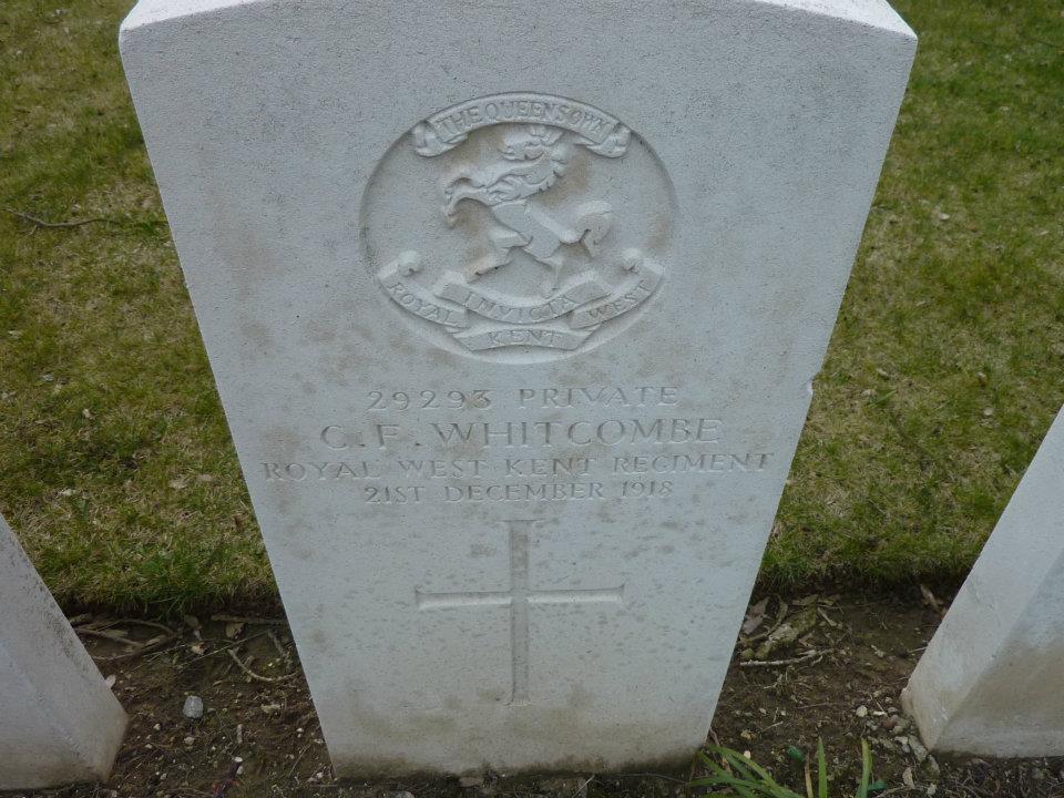 Private Charles Francis WHITCOMBE, G/29293, Queens Own Royal West Kent Regiment, (posted to 1st/20th Battalion, London Regiment), died, 21st December 1918, age 19.
