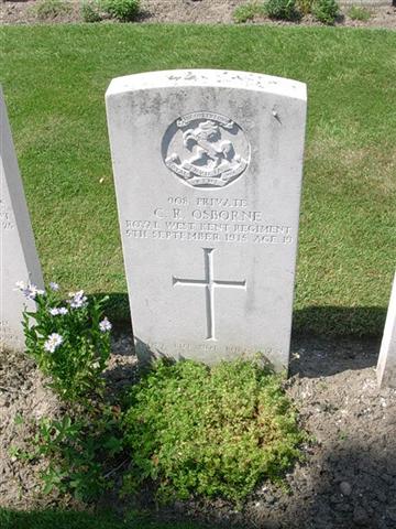 Private Charles Robert OSBORNE, G/908, 6th Battalion, Queens Own Royal West Kent Regiment, killed in action, Flanders France, 5th September 1915, age 19.