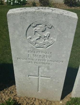 Private (unpaid Lance Corporal), Ernest Walter LANE, G/1301, 7th Battalion, Queens Own Royal West Kent Regiment, killed in action, Flanders, France, 3rd March 1917.
