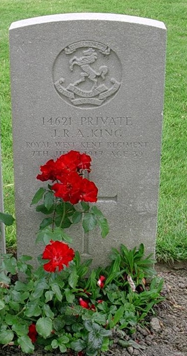 Private John Robert Abra KING, G/14621, 10th Battalion, Queens Own Royal West Kent Regiment, died of wounds, 17 Casualty Clearing Station, France, 7th June 1917.