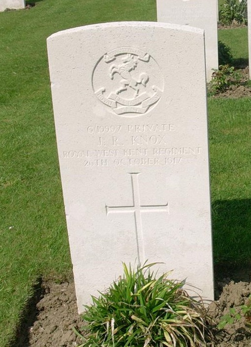 Private John Robert KNOX, G/19997, 1st Battalion, Queens Own Royal West Kent Regiment, killed in action, Flanders France, death assumed on or since, 26th October 1917.