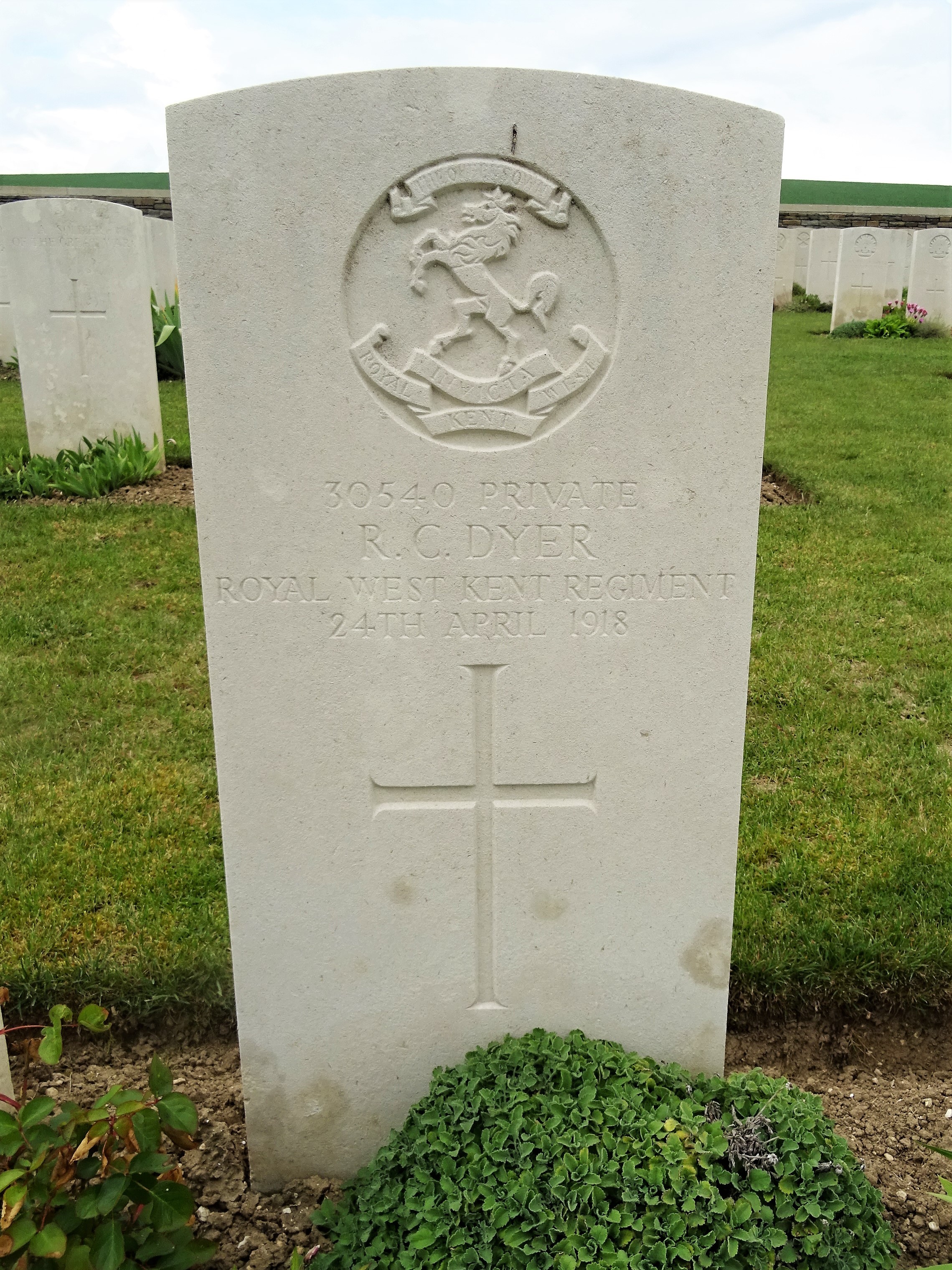 Private Robert Charles DYER, G/30540, 7th Battalion, Queens Own Royal West Kent Regiment, (formerly 2640, West Kent Yeomanry), killed in action, Flanders France, 24th April 1918.