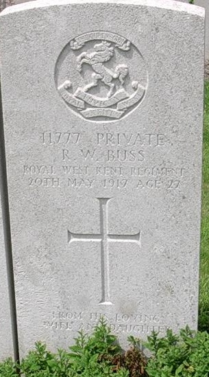 Private Robert William BUSS, G/11777, 10th Battalion, Queens Own Royal West Kent Regiment, died of wounds, 10th Casualty Clearing Station, Flanders France, 20th May 1917, age 22.