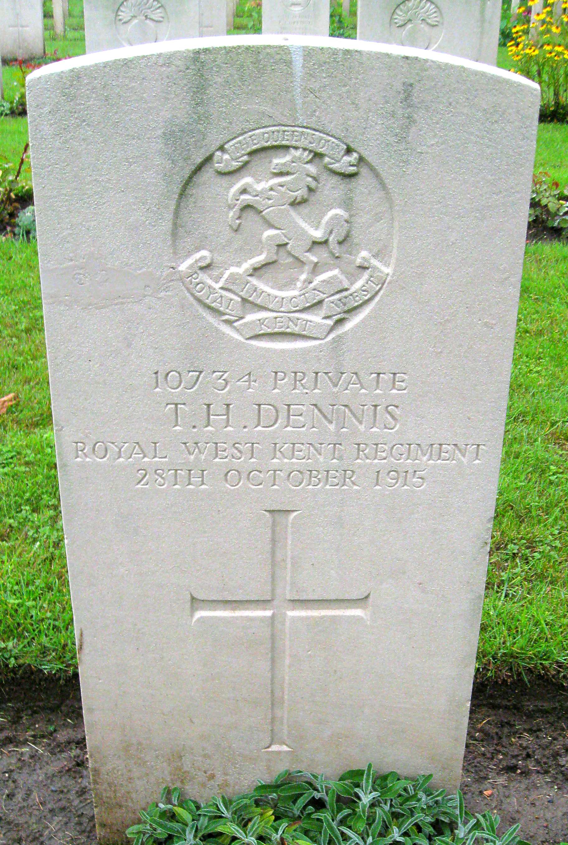 Private Thomas Henry DENNIS, L/10734, 6th Battalion, Queens Own Royal West Kent Regiment, died of wounds, 38th Field Ambulance, Flanders France, 28th October 1915.