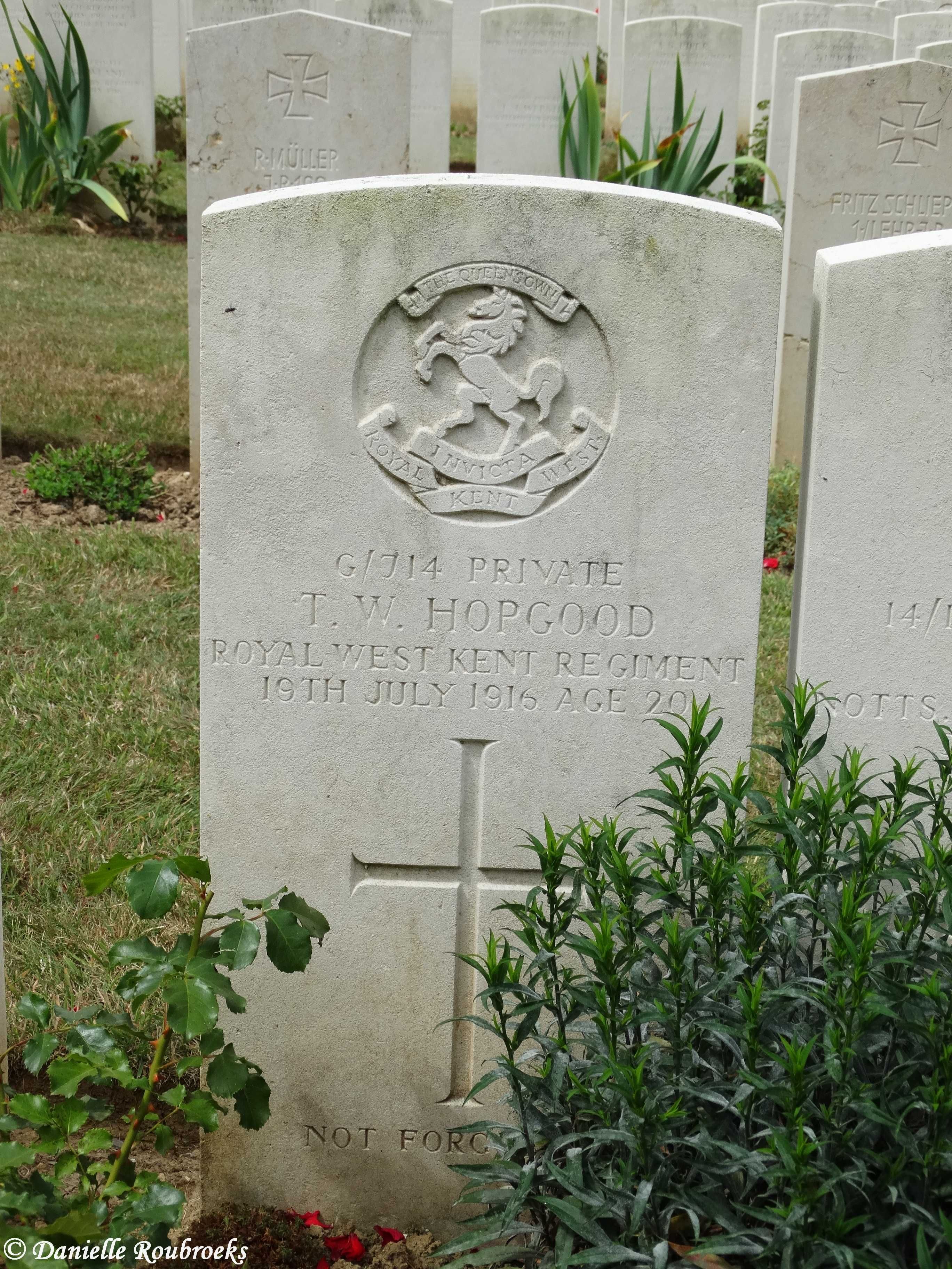 Private Thomas William HOPGOOD, G/714, 6th Battalion, Queens Own Royal West Kent Regiment, died of wounds, Flanders France, 19th July 1916.