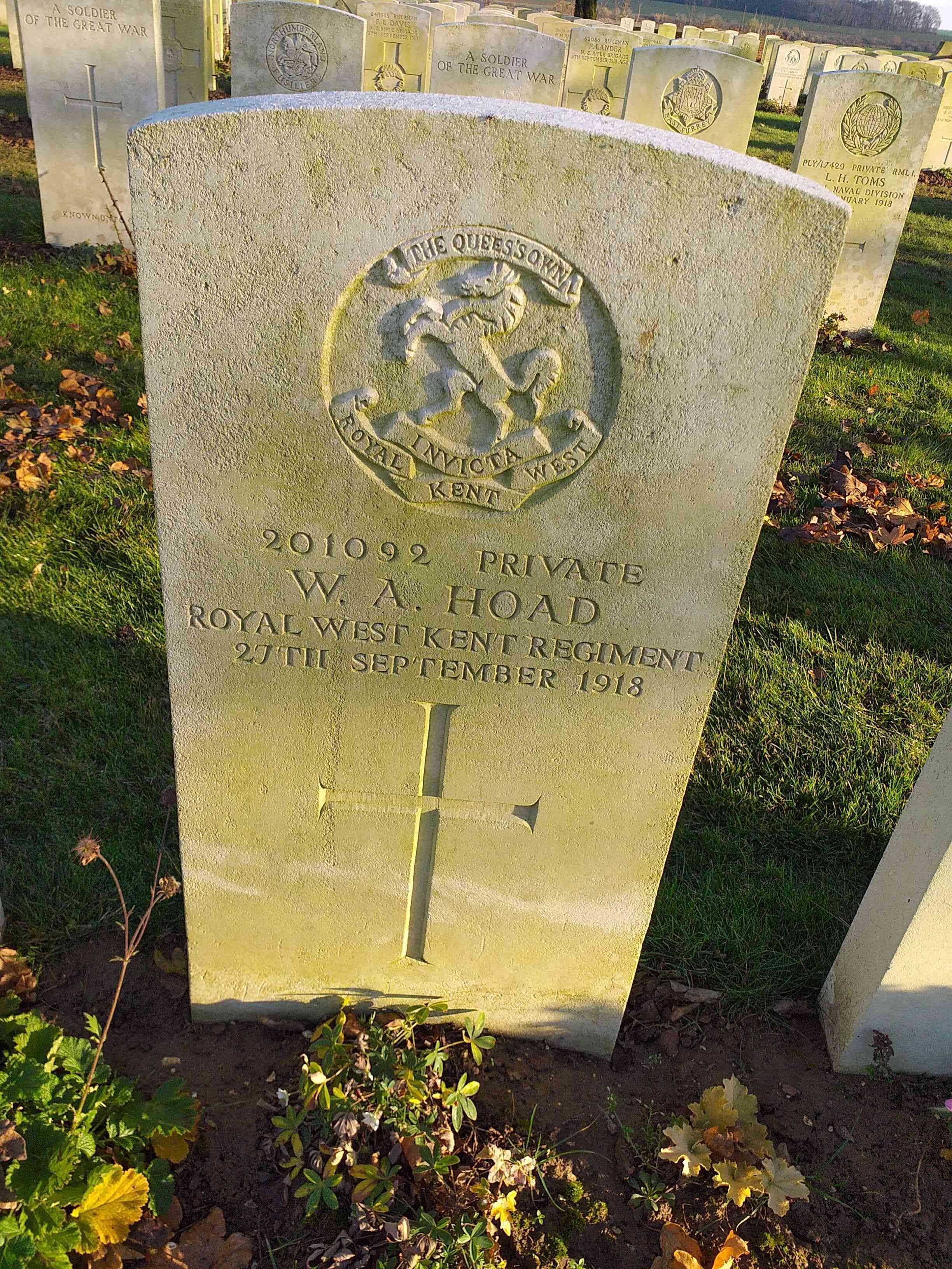 Private William Albert HOAD, 201092, 1st Battalion, Queens Own Royal West Kent Regiment, killed in action, Flanders France, 27th September 1918.
