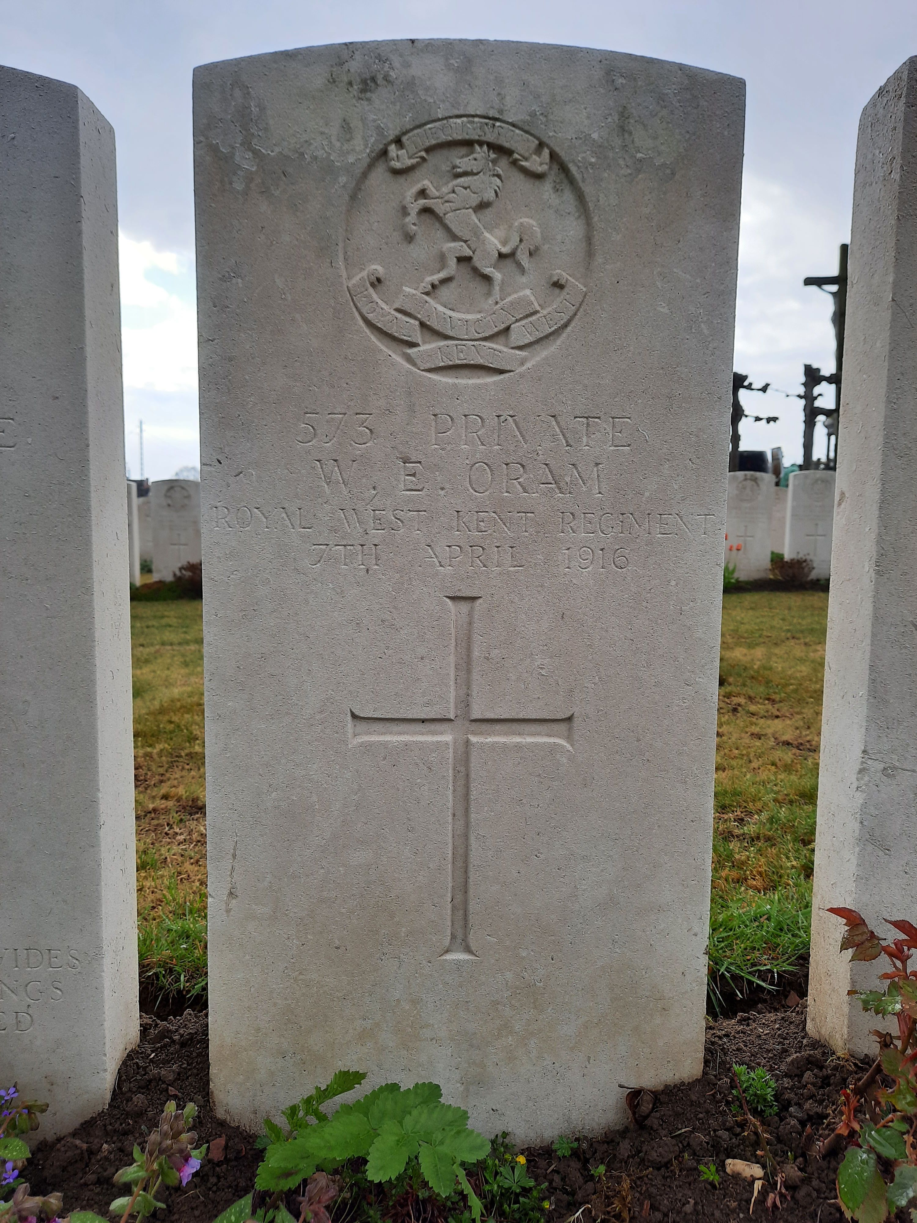 Private William Edward ORAM, G/573, 6th Battalion, Queens Own Royal West Kent Regiment, died of wounds, 6 Casualty Clearing Station, France, 7th April 1916.