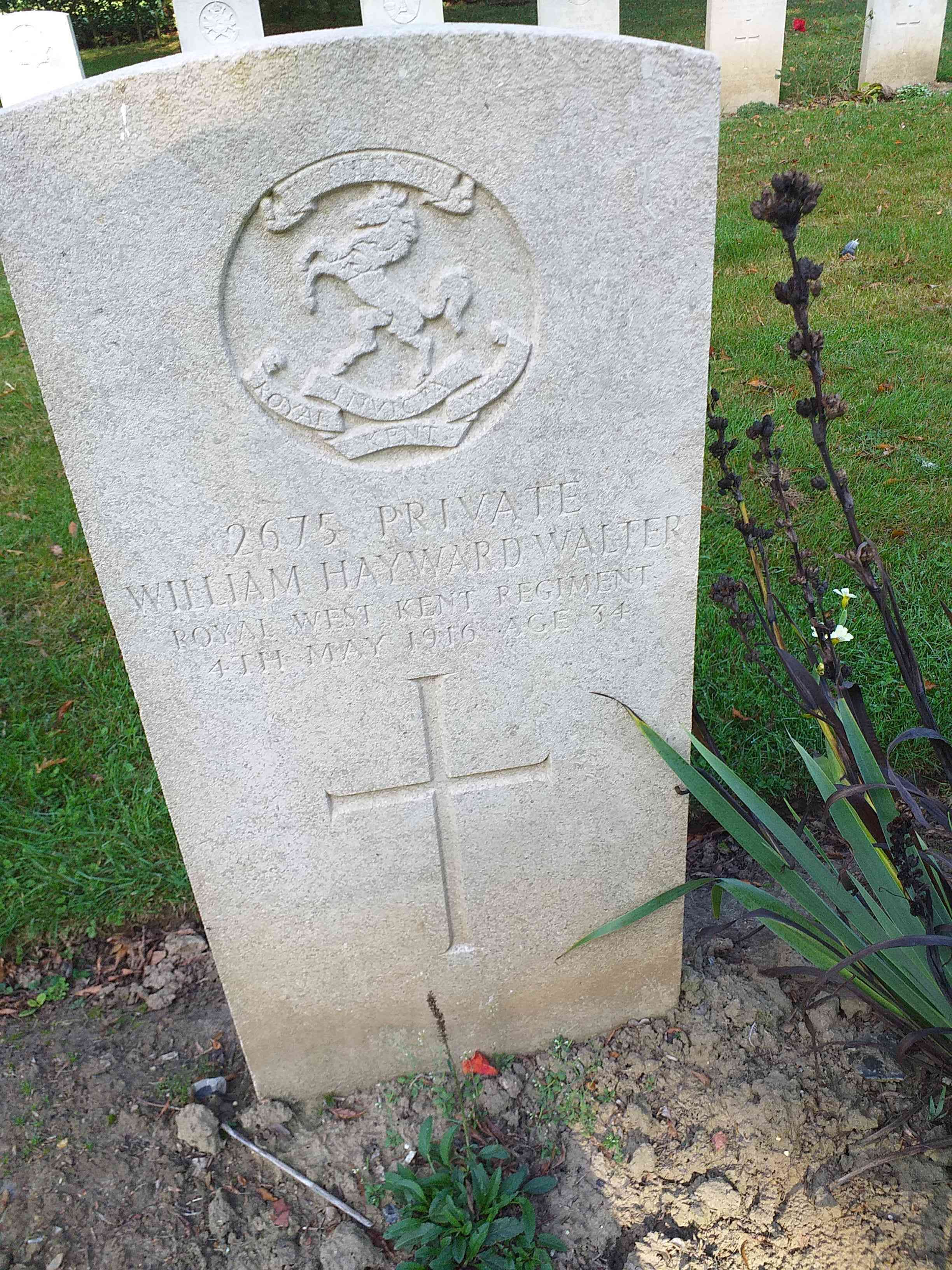 Private William Hayward WALTER, G/2675, 6th Battalion Queens Own Royal West Kent Regiment, died of wounds, (bomb accident**), 56th Field Ambulance, Flanders France, 4th May 1916, age 34.