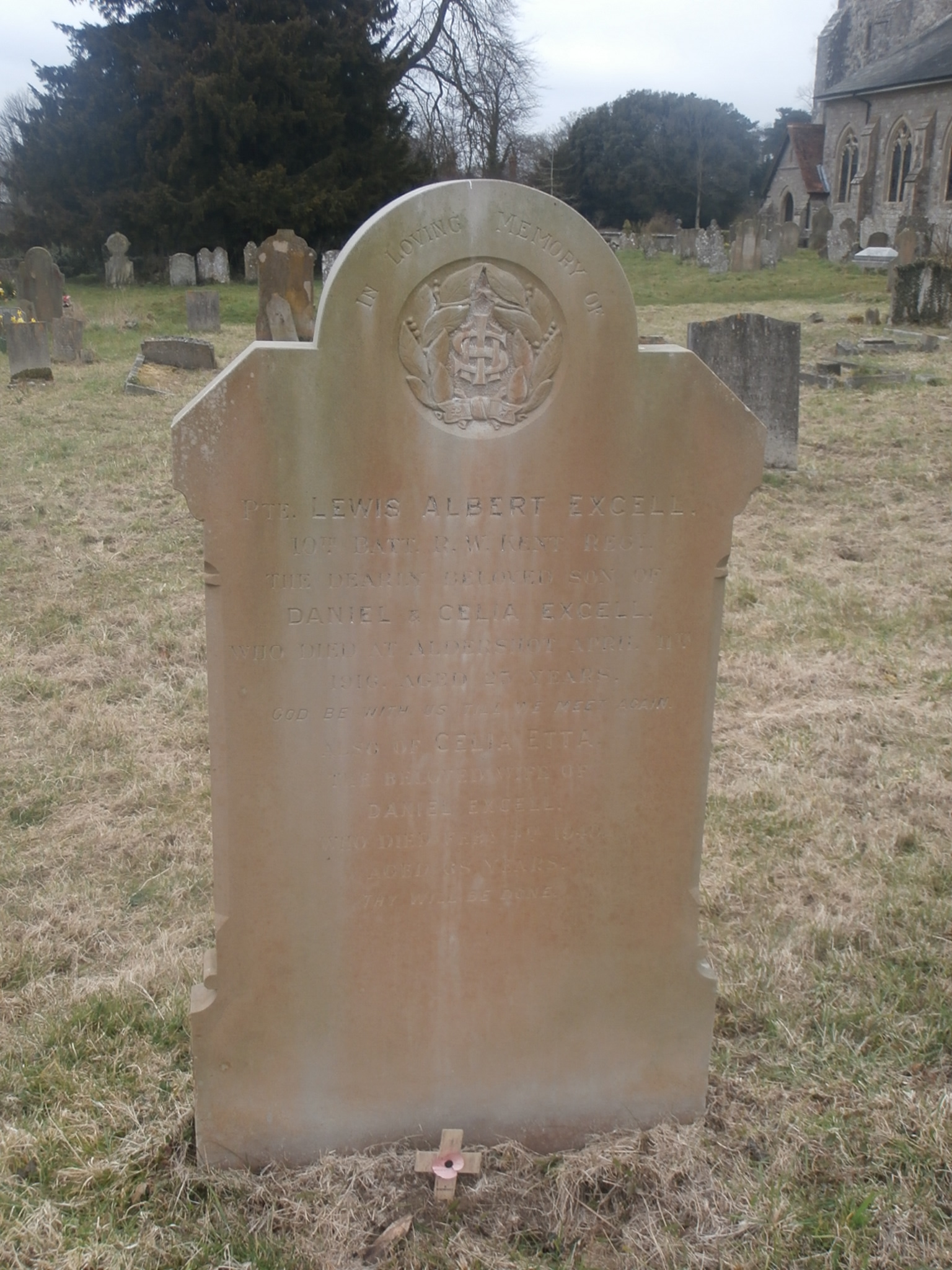 Private Lewis Albert EXCELL, G/11473, 10th Battalion, Queens Own Royal West Kent Regiment, died at Aldershot Isolation Hospital, 11th April 1916, age 22.