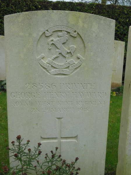 Private George Henry HAYWARD, G/28586, 6th Battalion, Queens Own Royal West Kent Regiment, died of wounds, Flanders France, 28th March 1918, age 40.